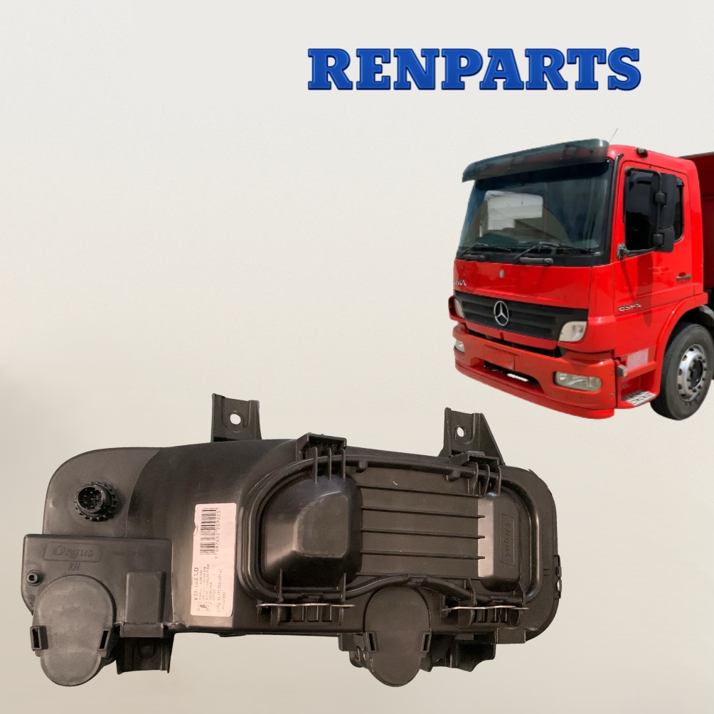 O farol atego direito raiado é aplicado em caminhões Mercedes-Benz Atego modelos 1315 e 1318. Além disso, a peça corresponde ao lado direito (passageiro), possui 2 focos e não conta com auxiliar para neblina.