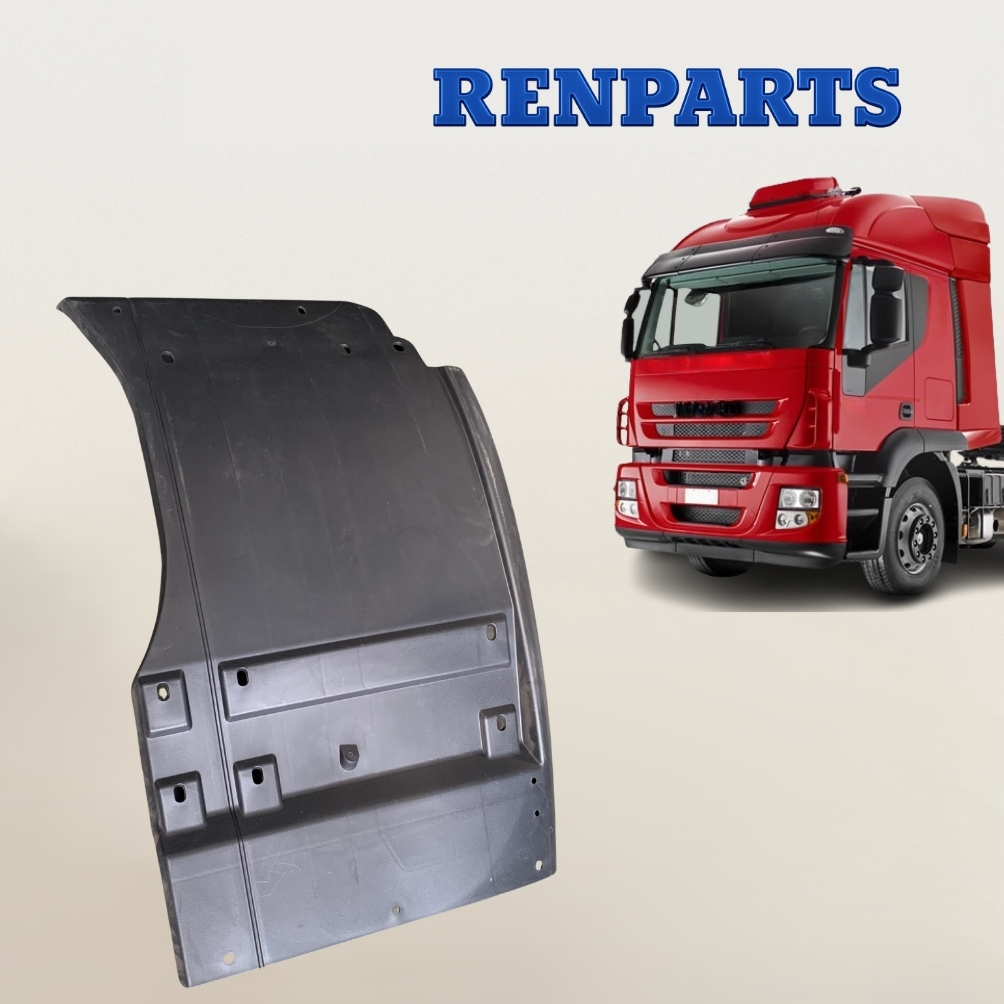 O paralama pos cabine iveco lado direito (Passageiro) é uma peça nova original, desenvolvida para garantir proteção, alinhamento e acabamento adequado à região pós-cabine dos caminhões Iveco Stralis, Hi-Way e Hi-Road. Esse componente atua diretamente na contenção de sujeira, água e detritos lançados pelas rodas, contribuindo para a preservação da estrutura e de outros componentes do veículo. Além disso, mantém o padrão visual característico da linha Iveco.