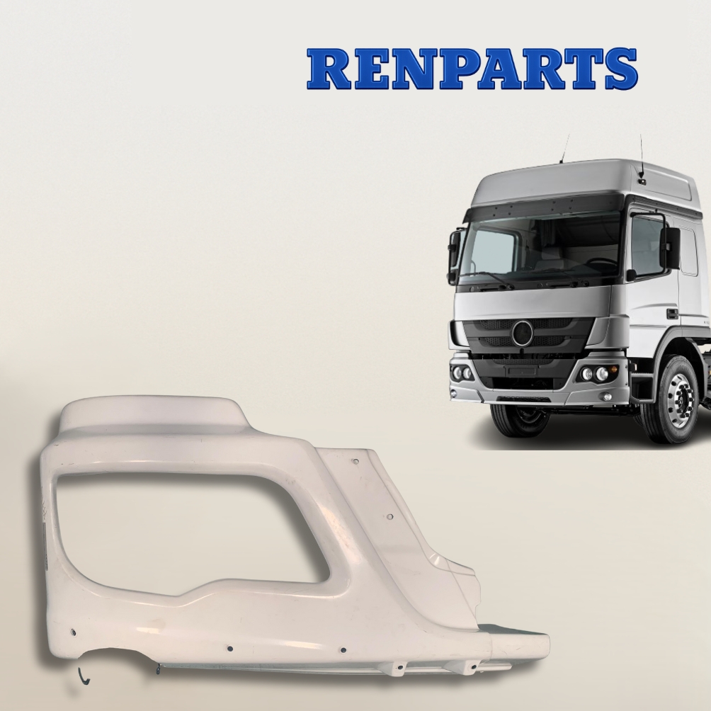 A ponteira parachoque mb atego lado direito (Passageiro) com recorte é uma peça nova, desenvolvida para garantir acabamento correto, proteção e alinhamento do para-choque dianteiro do caminhão. Esse componente contribui para a estética do veículo e para a proteção das extremidades, mantendo o padrão visual original da linha Atego.